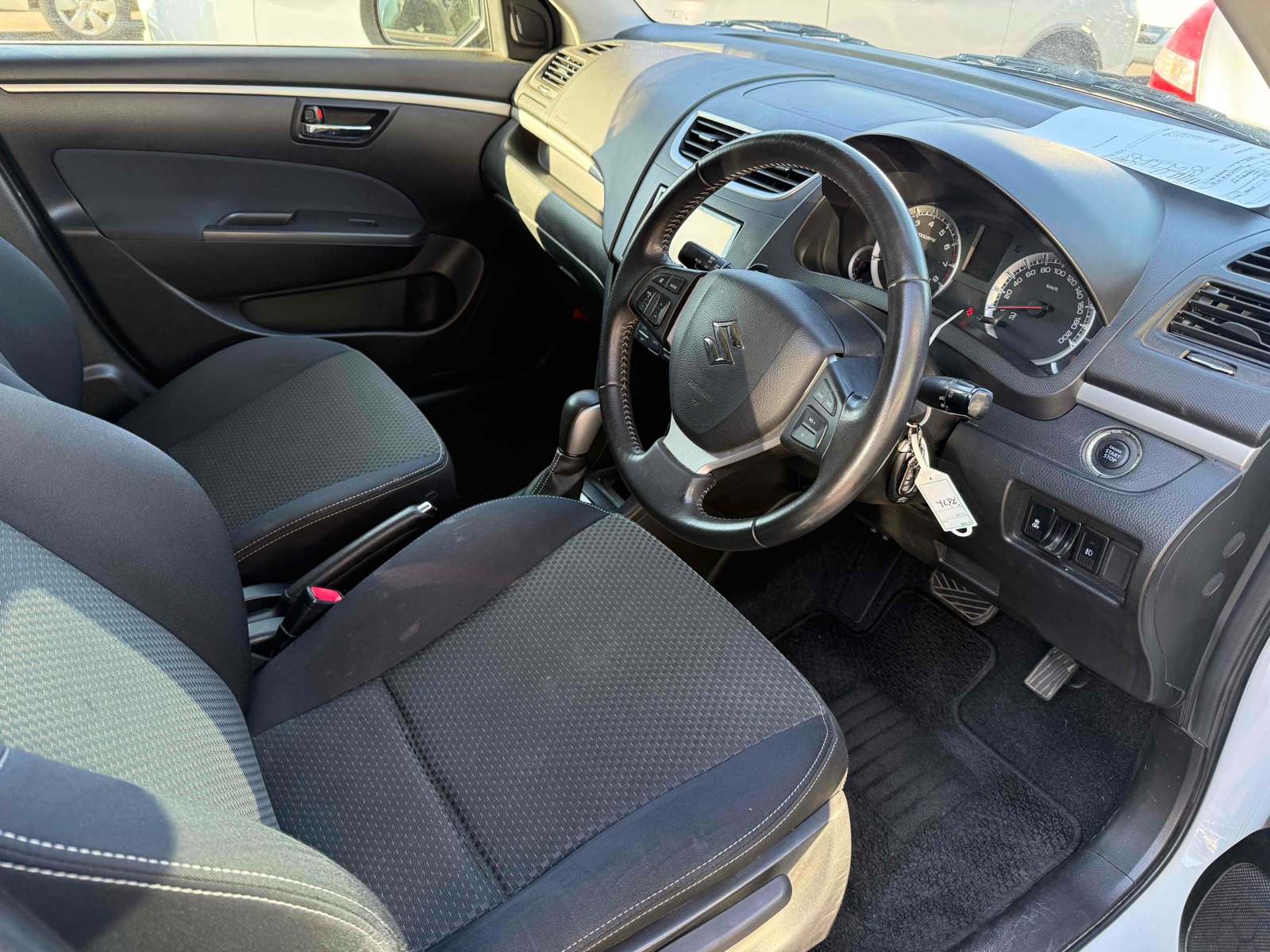 The 2013 Suzuki Swift is the perfect small car for city driving. It comes in a stunning pearl color and offers smooth handling with its 2WD and paddle shift transmission. With only 82,000 km on the clock, it's a reliable choice. Feel safe and comfortable with features like stability control and two airbags. The car is equipped with power windows and a steering adjustment for your convenience. Enjoy the ride with stylish alloy wheels and a modern black trim. You'll love the added extras like a remote key and UV filter glass that blocks harsh sunlight. This Swift is not just practical, but also a fun drive packed with features. Experience the joy of driving with the Suzuki Swift today!