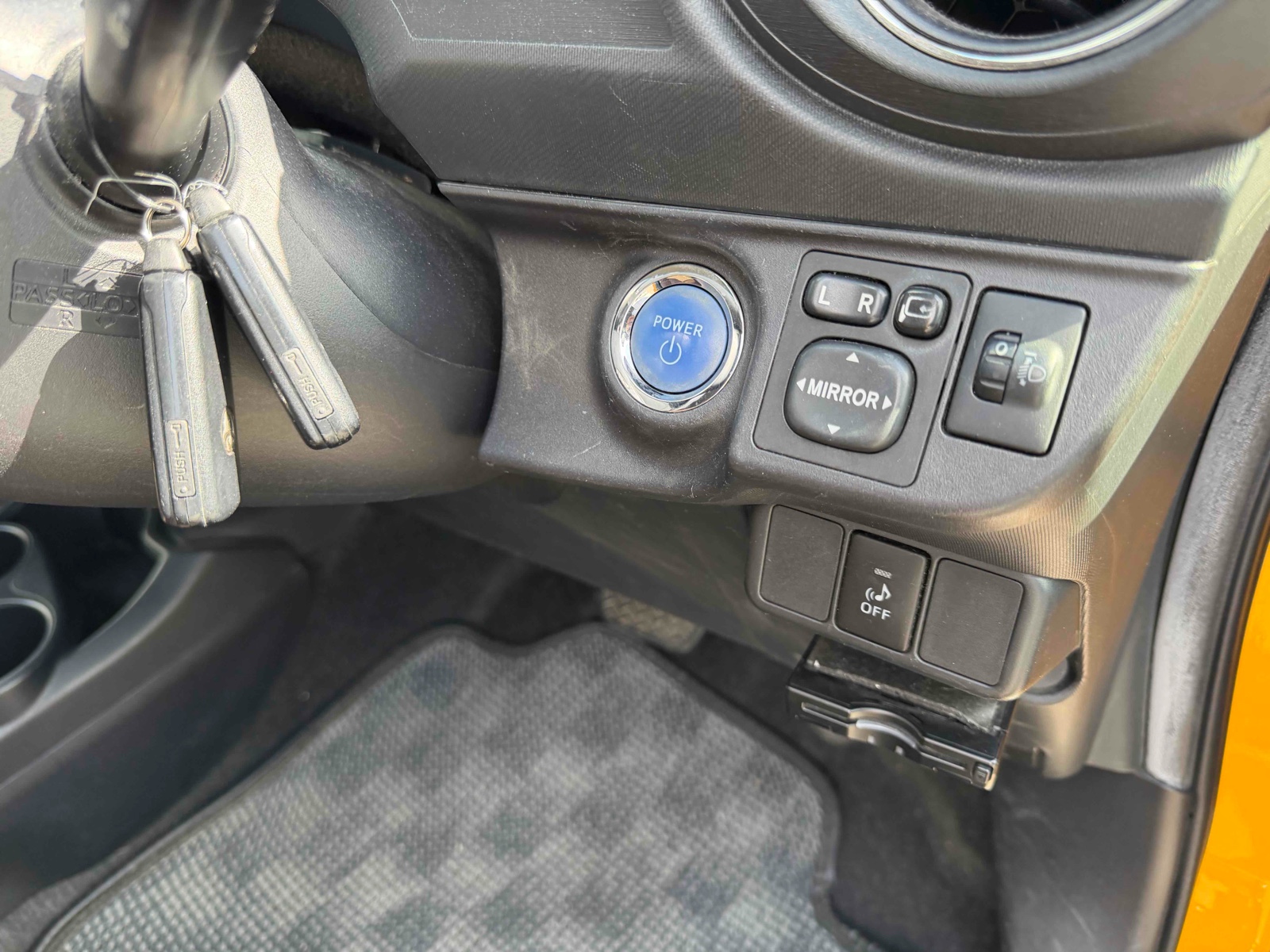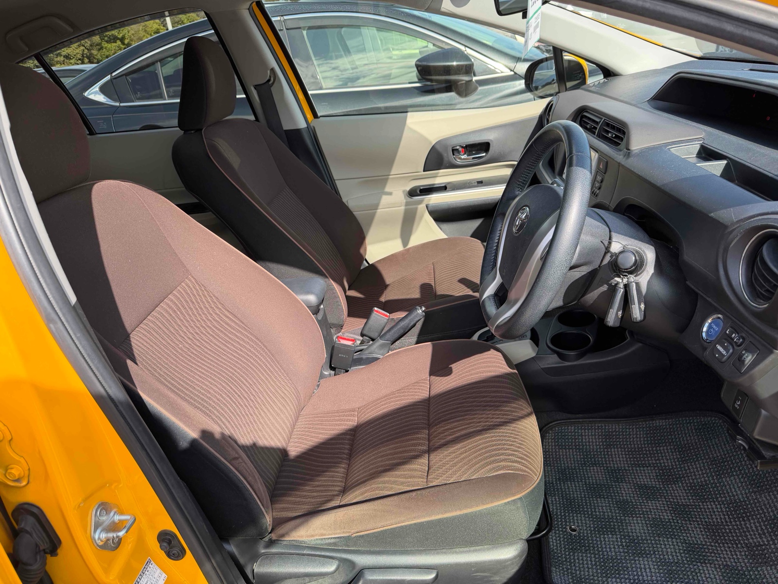 Experience the smart and stylish 2013 Toyota Aqua Hybrid in a vibrant yellow color. This compact car is perfect for urban living, combining impressive fuel efficiency with comfortable features like automatic transmission and power windows. It promises a smooth drive with its front-wheel drive and foldable rear seats. Stay safe and secure with advanced features like airbags, anti-lock braking system, and traction control. These features work seamlessly to protect you on every journey. The rear wiper and UV toned glass add convenience and comfort, ensuring visibility and shielding from harsh sunlight. The 2013 Toyota Aqua offers a reliable hybrid experience with low mileage of just 122,000 km. Ideal for those seeking a dependable and eco-friendly option, this car is ready to meet your daily needs with style and efficiency. Enjoy the blend of practicality and performance in every ride.