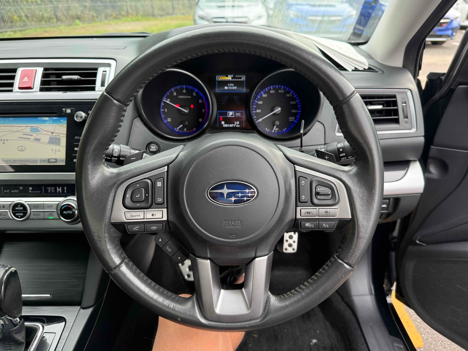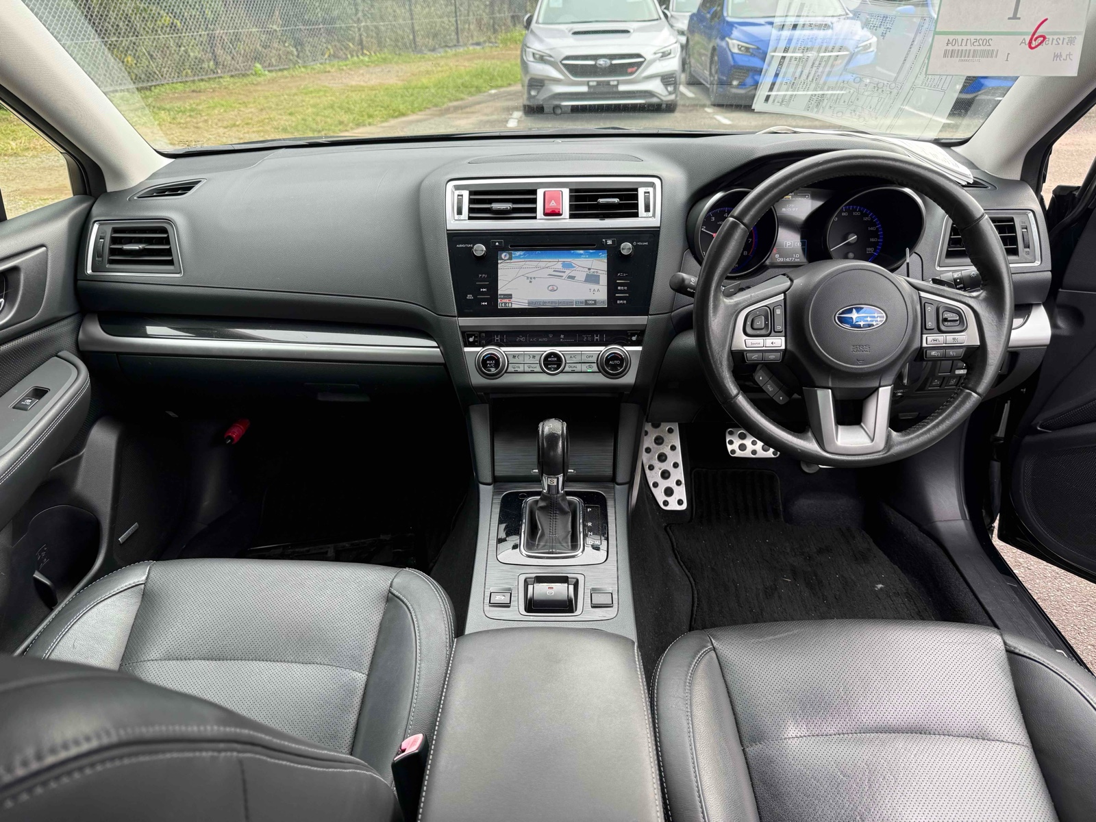 Discover the 2014 Subaru Legacy in stunning navy blue. This petrol car is equipped with 4WD and a paddle shift transmission, making it smooth and easy to drive. With a mileage of 91,000, it offers reliability for every journey. Feel secure with 8 airbags, stability control, and seatbelts. The reverse camera and remote key add convenience to your drive. Enjoy the elegance of black trim and alloy wheels enhances the look. Stay comfortable with power windows and steering adjustment. The UV filter glass protects you from harmful sun rays. The Subaru Legacy is perfect for those who seek style and safety in one package.