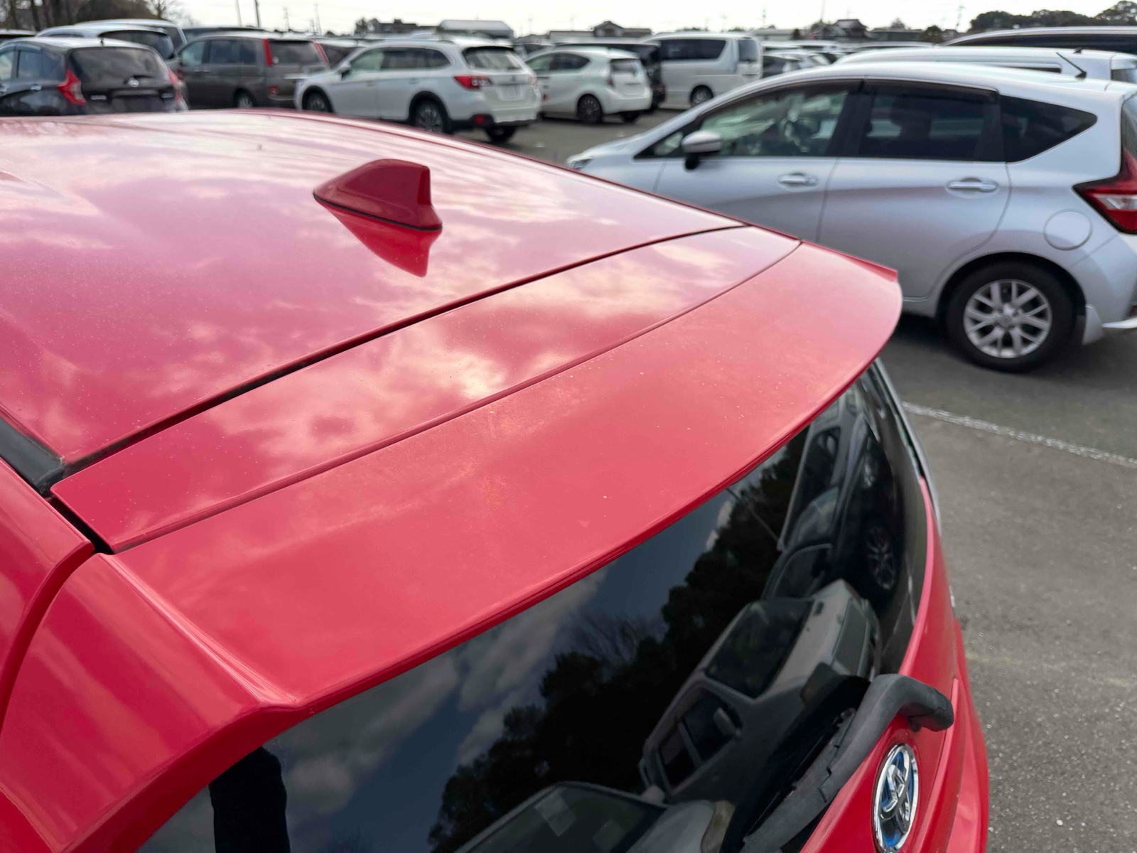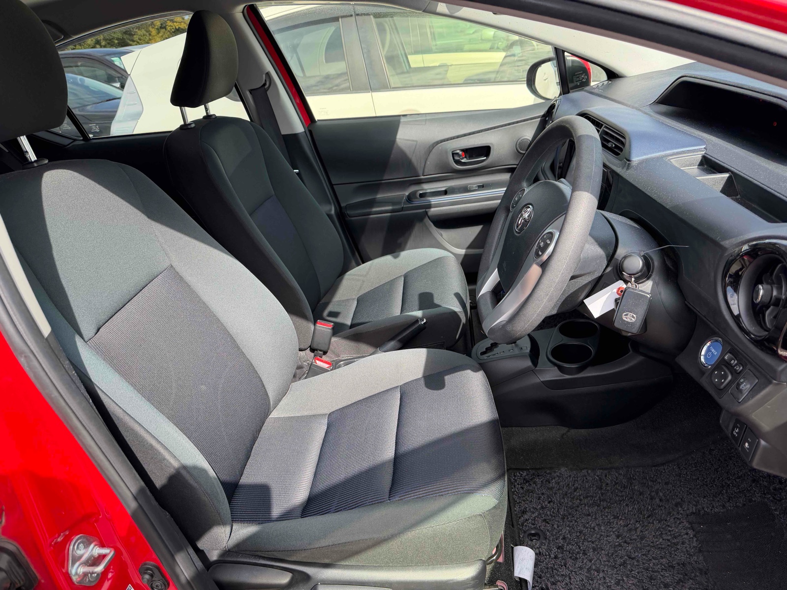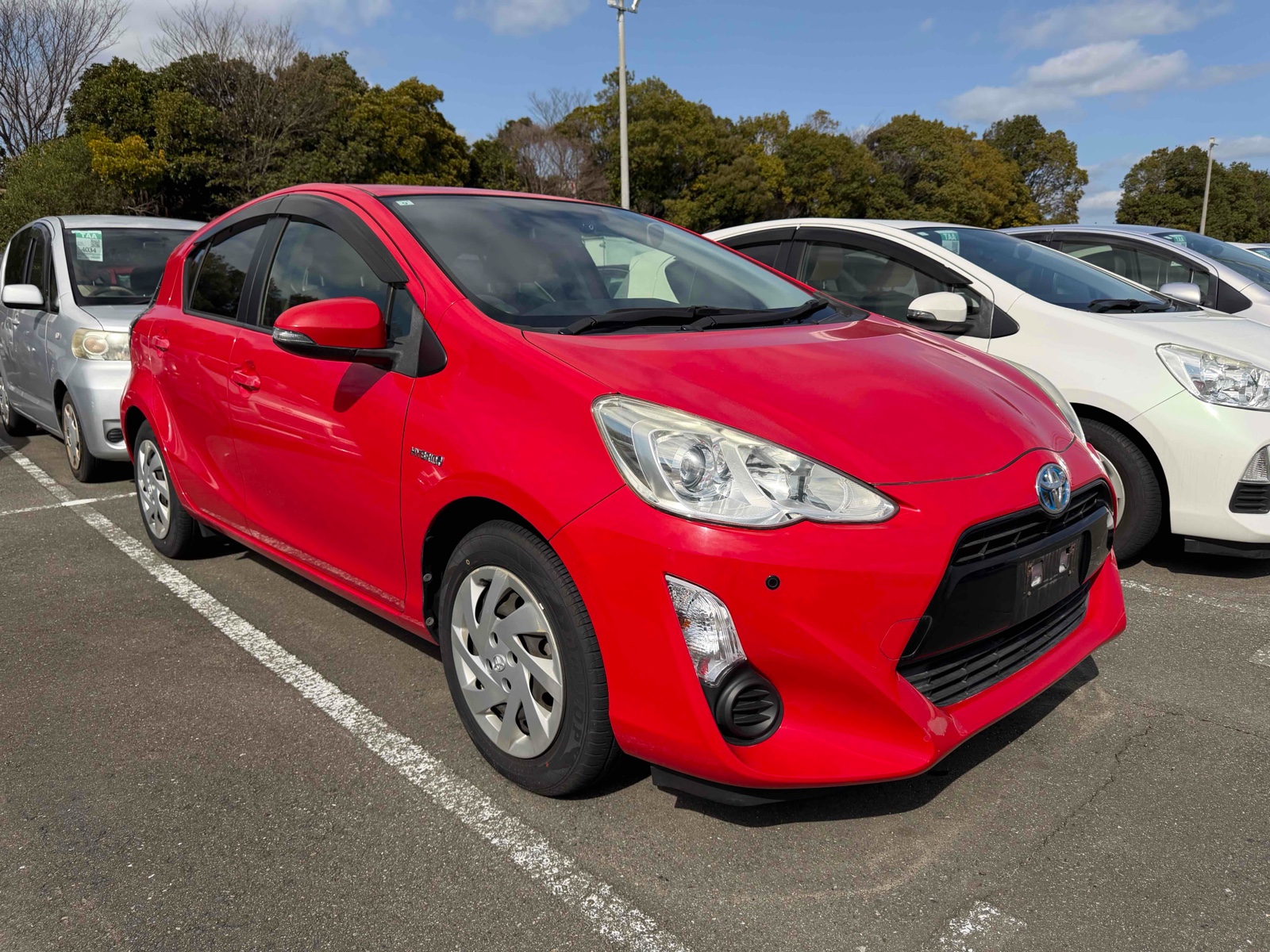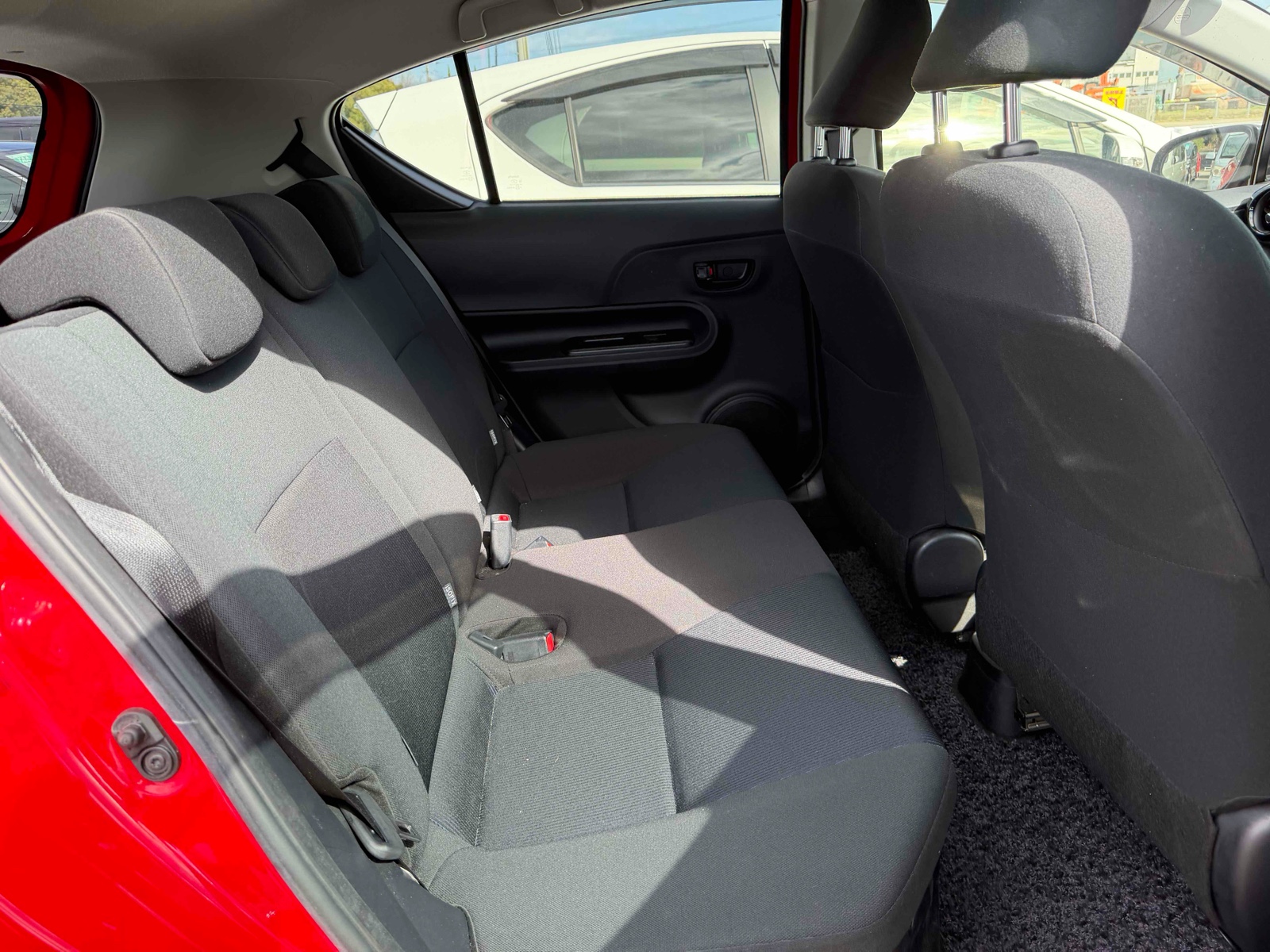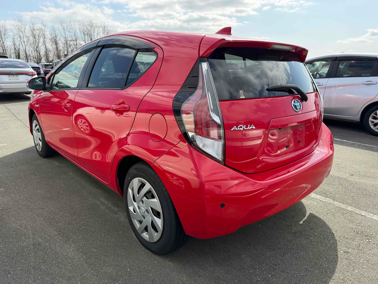 This 2015 Toyota Aqua Hybrid is perfect for those who want to save fuel and drive in style. With a stunning red color, it's sure to grab attention. The automatic transmission makes driving smooth and easy. Enjoy comfort with features like air conditioning and power windows. You can pack more with the foldable rear seat. It has only 36,000 miles, making it reliable for long journeys. Drive with peace of mind thanks to the car's safety features. It includes airbags, anti-lock brakes, and traction control. The UV-toned glass and rear wiper add extra convenience. Make this eco-friendly car yours today!