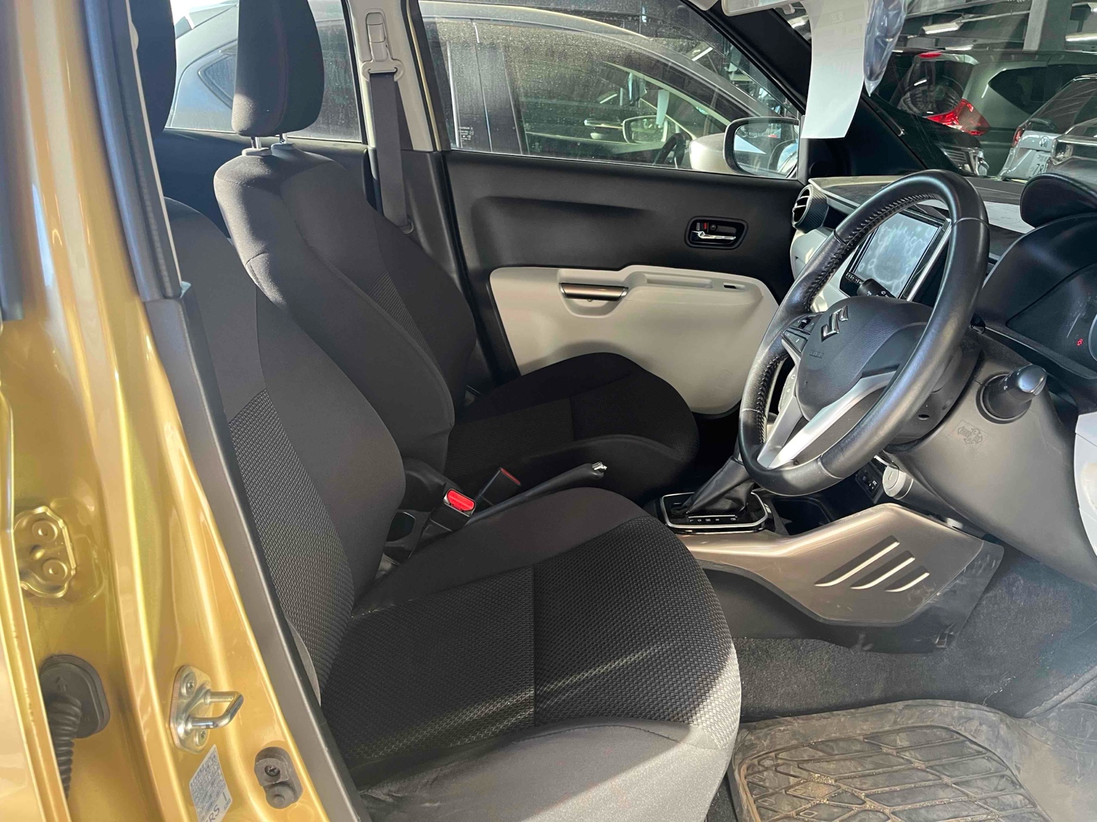 Discover the 2019 SUZUKI IGNIS Hybrid. Its fuel-efficient hybrid engine is perfect for both city and highway driving. The automatic transmission and front-wheel drive ensure a smooth ride each time. Inside, the IGNIS offers comfort and convenience. Enjoy the air conditioner, power windows, and cruise control for relaxed journeys. The leather steering adds a touch of luxury to your drive. Safety comes first with multiple airbags, anti-lock braking, and brake assist. The anti-theft system and rear fog lights provide peace of mind. Enjoy the enhanced privacy with UV and toned glass.